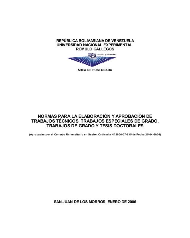 NORMAS PARA LA ELABORACIÓN Y APROBACIÓN DE TRABAJOS TÉCNICOS, TRABAJOS ESPECIALES DE GRADO, TRABAJOS DE GRADO Y TESIS DOCTORALES.